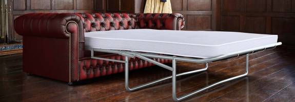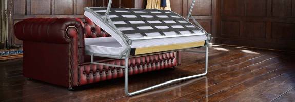 Perfekt für Ihr Gästezimmer eignet sich ein Original Chesterfield Sofa mit Bettmechanismus. Auch hier haben Sie die Möglichkeit eines unserer Sofa Modelle zu wählen, Lederart und -farbe und die Nägel zu bestimmen und zusätzlich noch die Bettfunktion hinzu zu fügen. Wir bieten Ihnen verschiedene Matratzenbreiten und -qualtiäten zur Auswahl an. Auf Grund des robusten Bett-Mechanismus und der qualitativ hochwertigen Matratze eignet sich das Chesterfield Bettsofa auf für den täglichen Gebrauch.